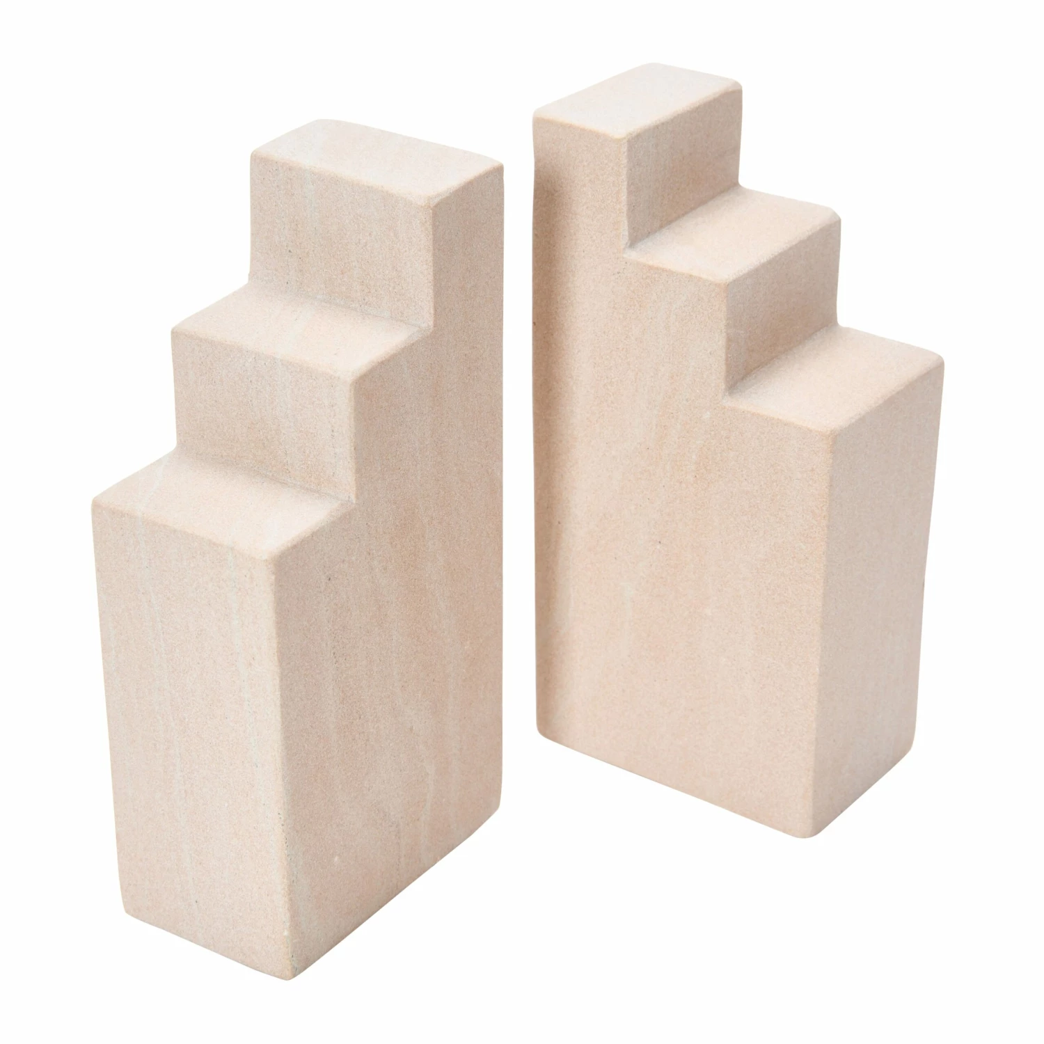 This set of hefty marble bookends feature a unique stair step design and secure beloved books beautifully on a desk, bookcase or shelf. Each heavy duty bookend is made of natural marble and can be used vertically or horizontally, making them great decorative accent pieces for shelf styling in any modern boho office, bedroom or study.