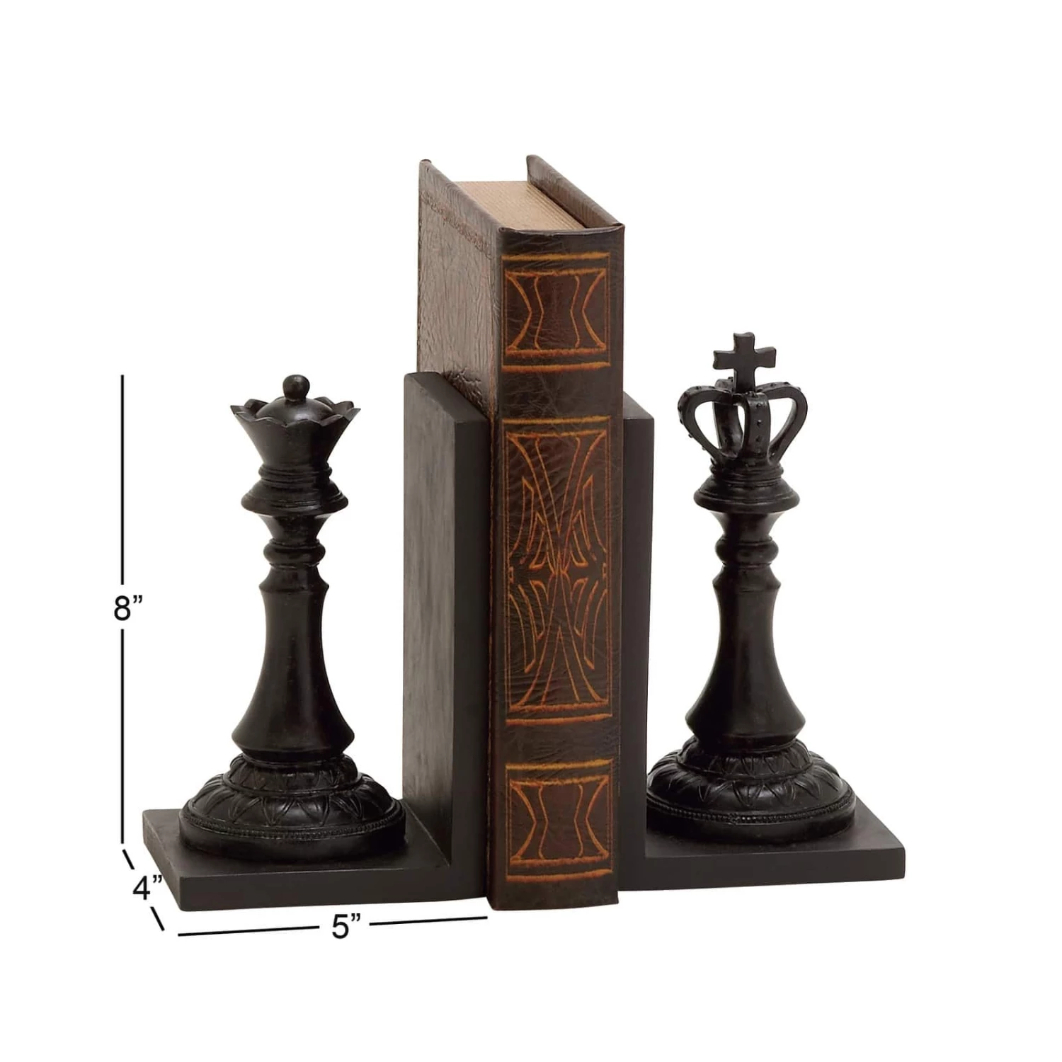 Transform your rustic and traditional-inspired bookshelves at home and in your office with the addition of this King and Queen chess piece bookend pair! This impressive home library/office décor set is made of polystone in a textured finish and L-shaped panels.