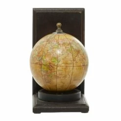 Give your bookshelf, office, night table or coffee table a little love with this bookend set. Placed on your office or library shelves, tables, or consoles, this bookend set is sure to bring some style and class to your room. Suits rustic and traditional designs, these bookends with decorative world globes are both beautiful and functional—can be displayed in the living room as well as bedroom. Designed with black rubber stoppers at the base that prevent scratching furniture and table tops, as well as sliding around.