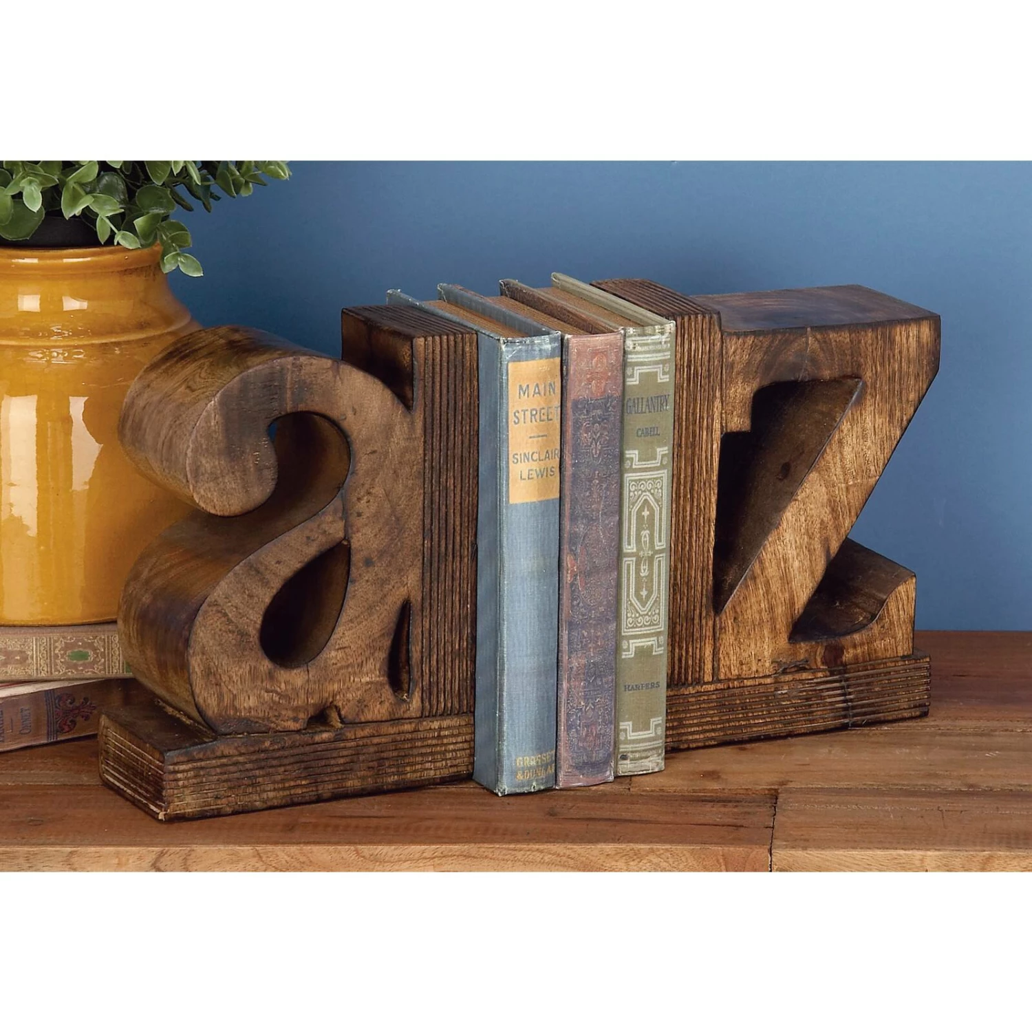 These wood bookends are made with a decorative and functional design that lets them be used together or separately as eye-catching desk accessories (and as reliable bookstands anywhere in the house).