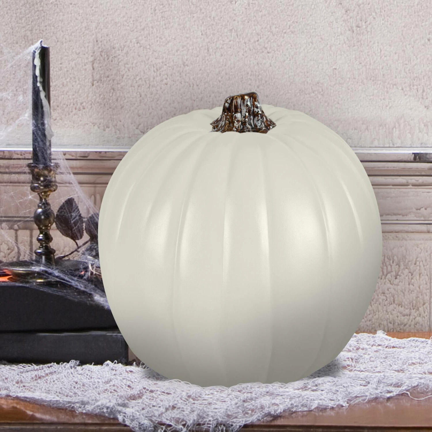 This cream pumpkin will make a great addition to your Halloween décor. You can beautify this accent with paints or glitter and pair it with pillar candles and crow figurines to create a stunning display.