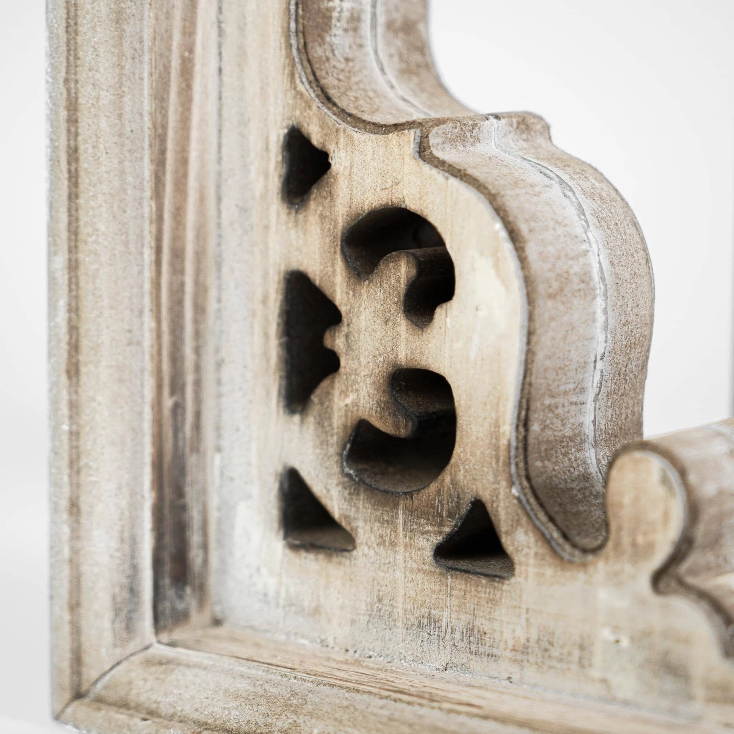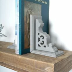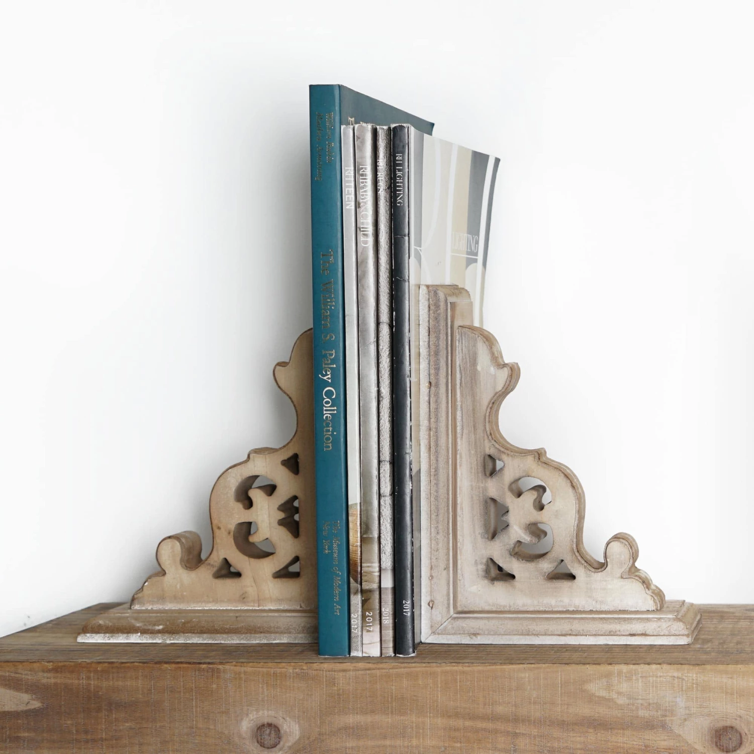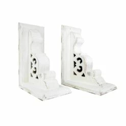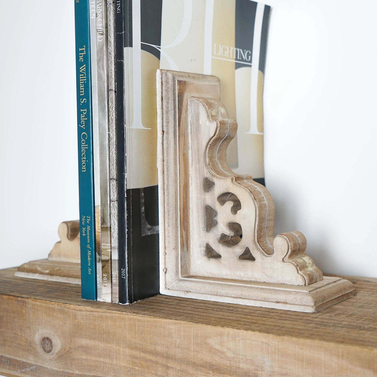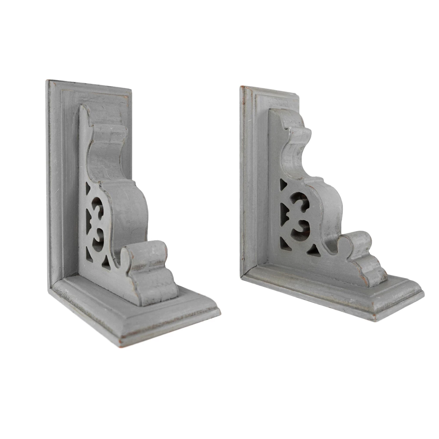 This set of two Renaissance-inspired carved wood bookends come evenly weighted to hold up and organize your favorite classic hardbacks or important paperwork. Painted in distressed vintage infused detailing, these pieces will fit seamlessly into a farmhouse, traditional, classic, grand millennial, and French Country style decors. Add your bookends to a shelf, table, or desk in your living room, dining room, bedroom, or kitchen for a streamlined décor upgrade. This set of floral motif corbels will instantly change up the focal point of your space.