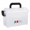 This handy storage satchel includes one marker tray and two dividers. The marker tray has 64 spaces that accommodate both standard and thin markers alike. The other half of the satchel can be used to store paper, stickers or a separate marker tray, sold separately.