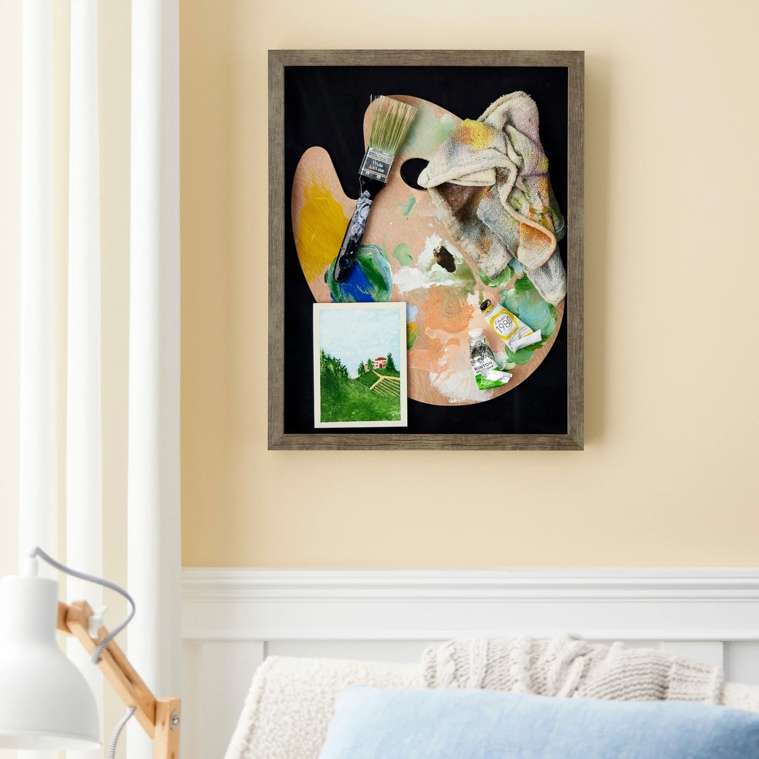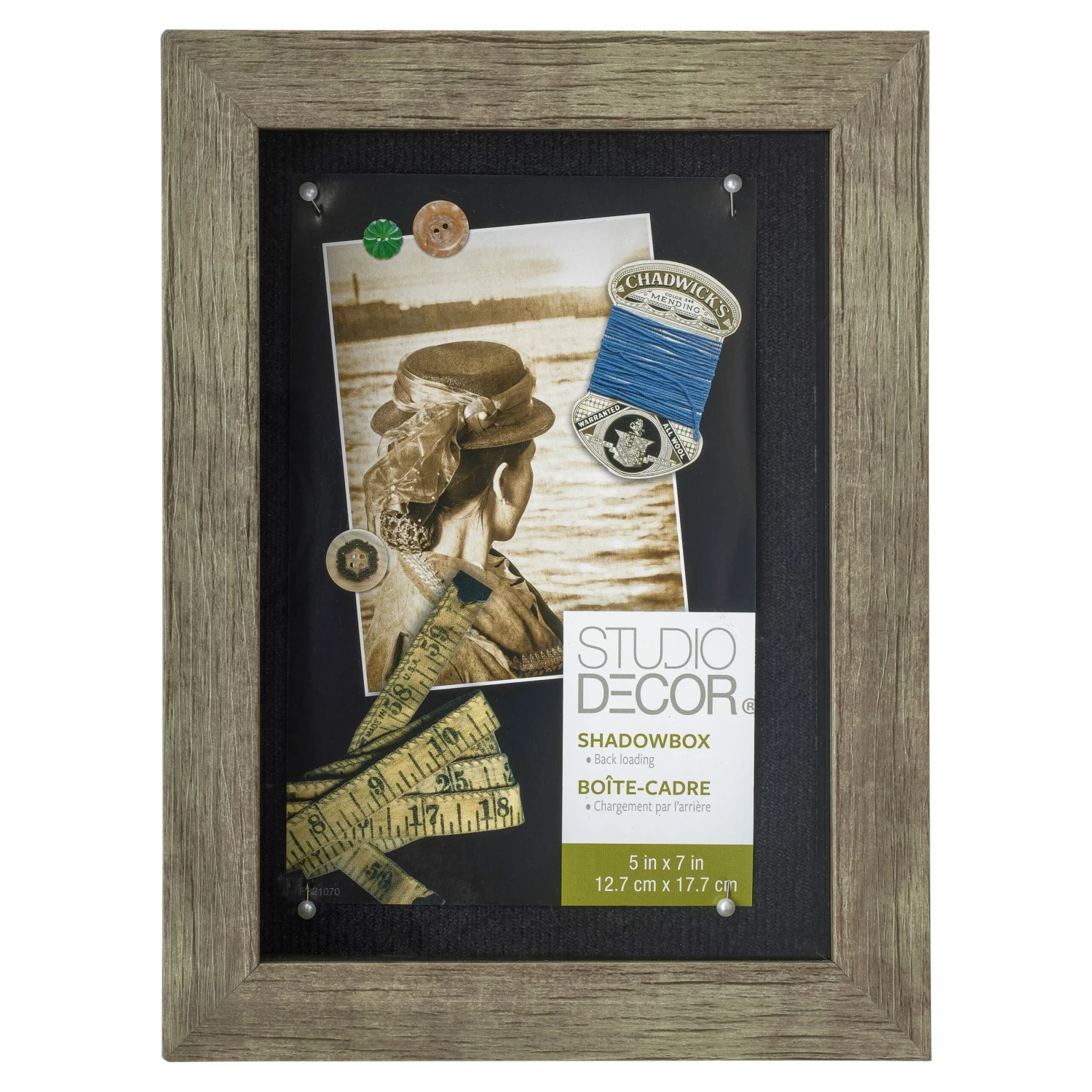 Display keepsakes and mementos in this shadow box that has a barnwood-like exterior. This beautiful frame has quick and easy back loading and includes a soft velour backer and hangers attached for wall hanging. Make your art and photos look better than ever! It’s ideal for setting on a shelf, or you can hang it on a wall.