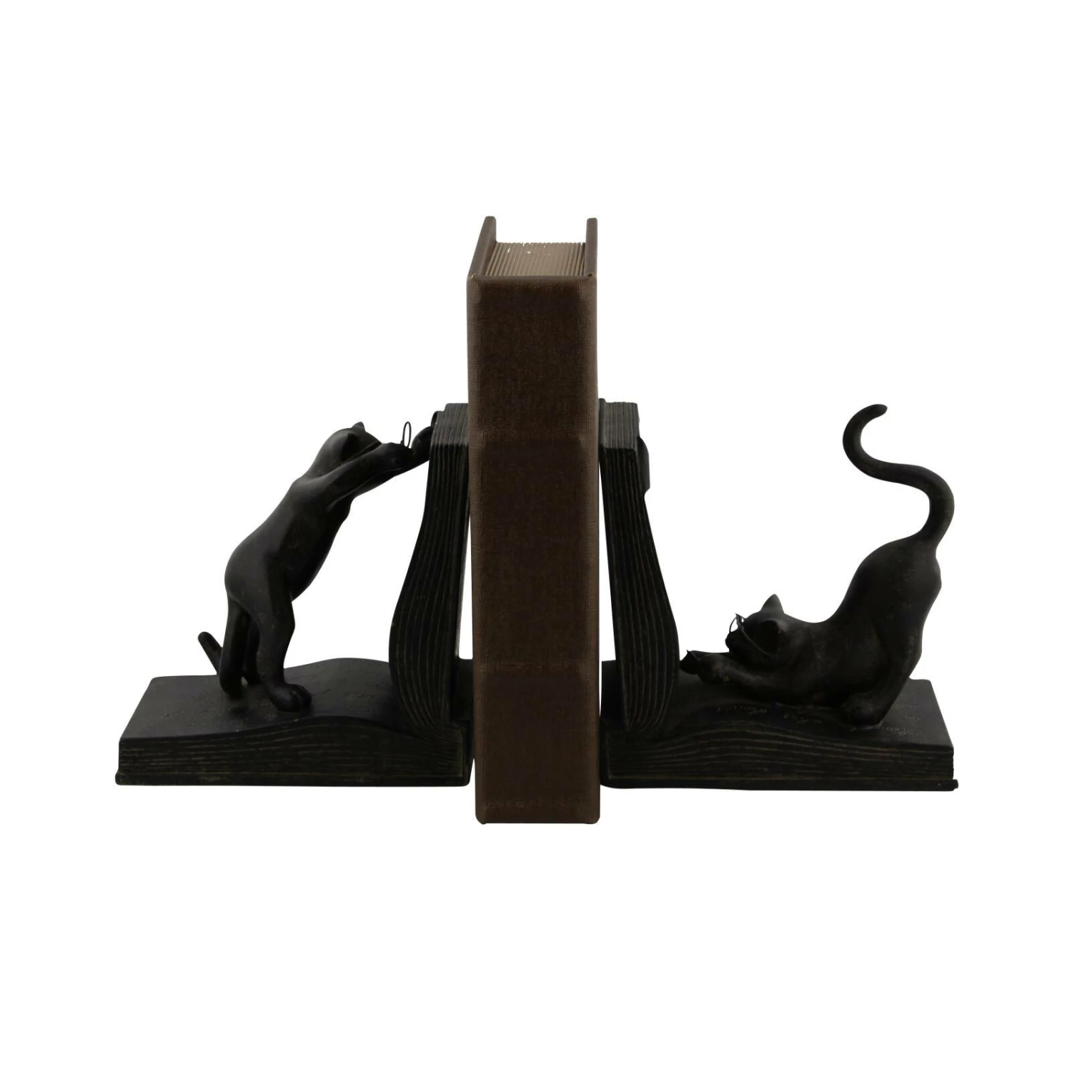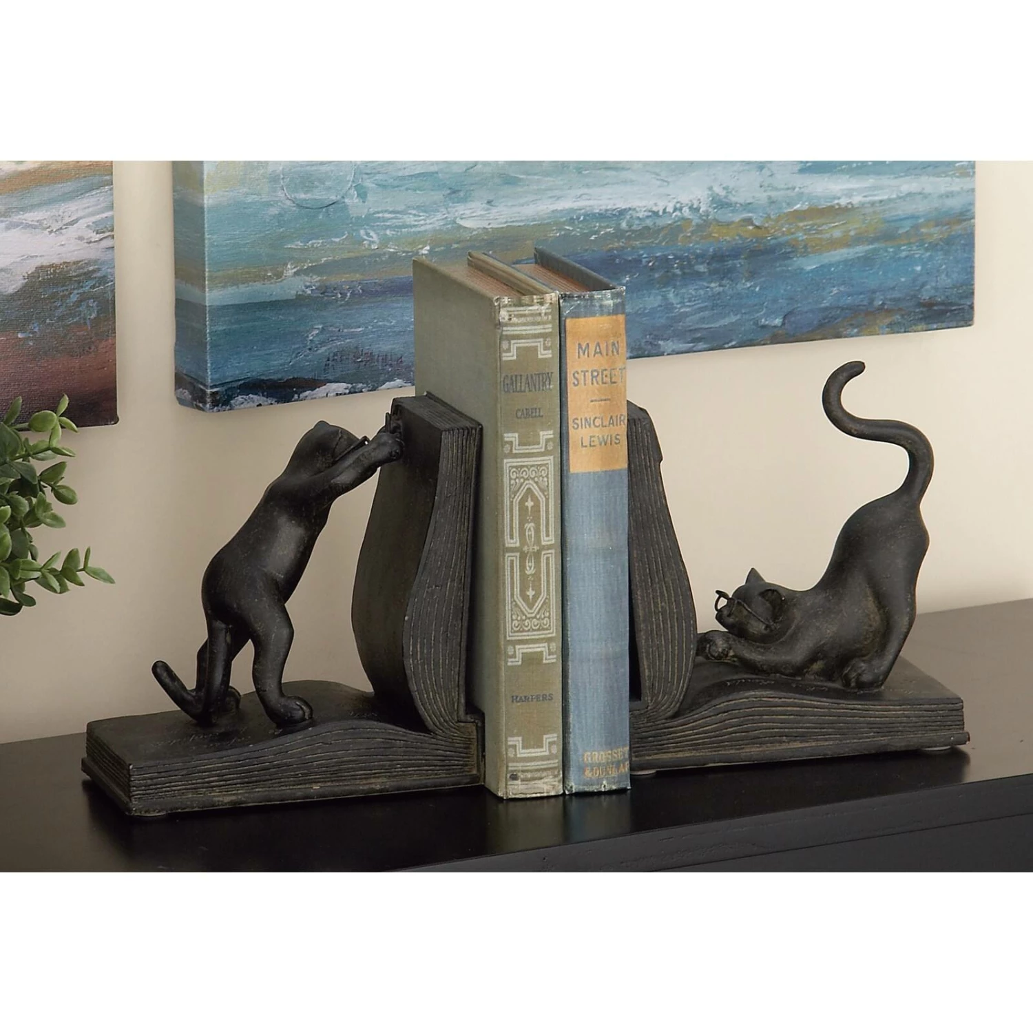 Black Polystone Eclectic Cat Bookends Set - Image 4