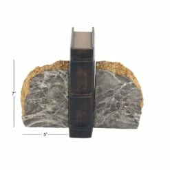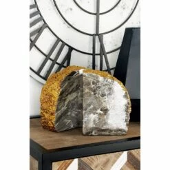 Metallic gold gives a glam flair to this set of faux thunder egg geode bookends. They will accentuate your earthy, natural décor alongside your crystals and plants! Placed on your office or library shelves, tables, or consoles, this bookend set is sure to bring glamorous style to your room.