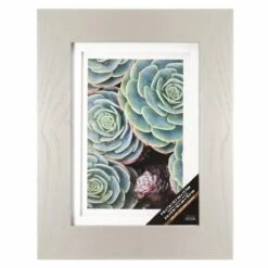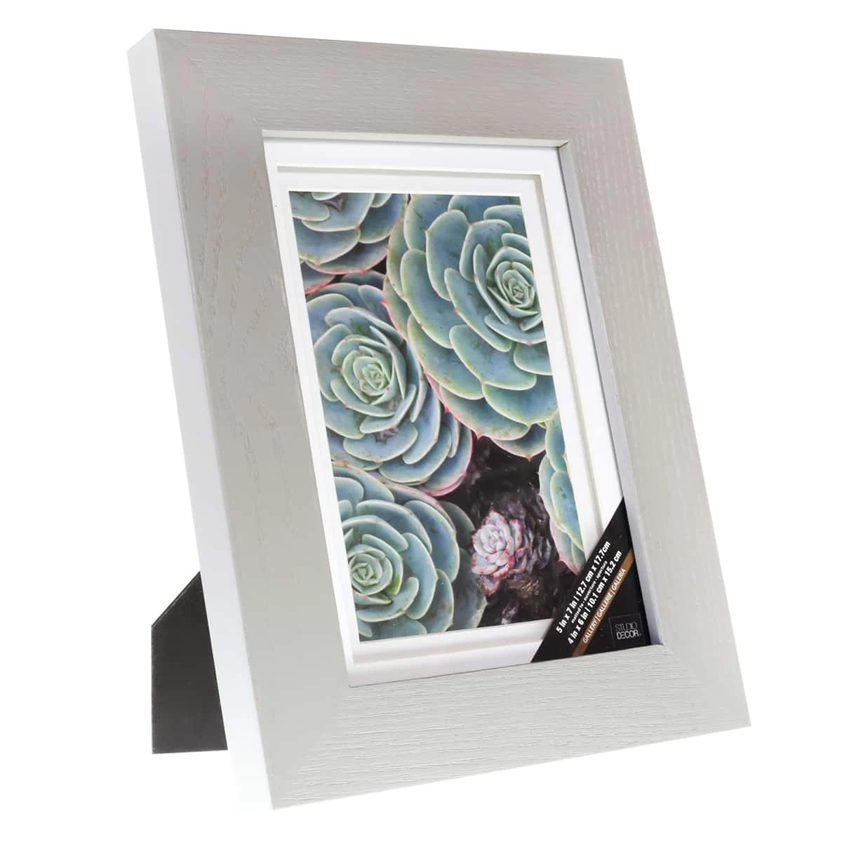 You will love the clean lines of this modern wall or tabletop frame. Your cherished photograph of friends or family will look great against the double white mat and gray frame.