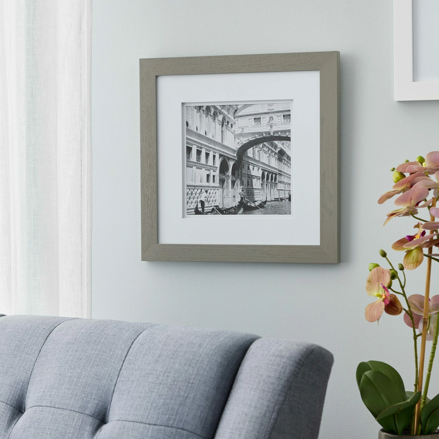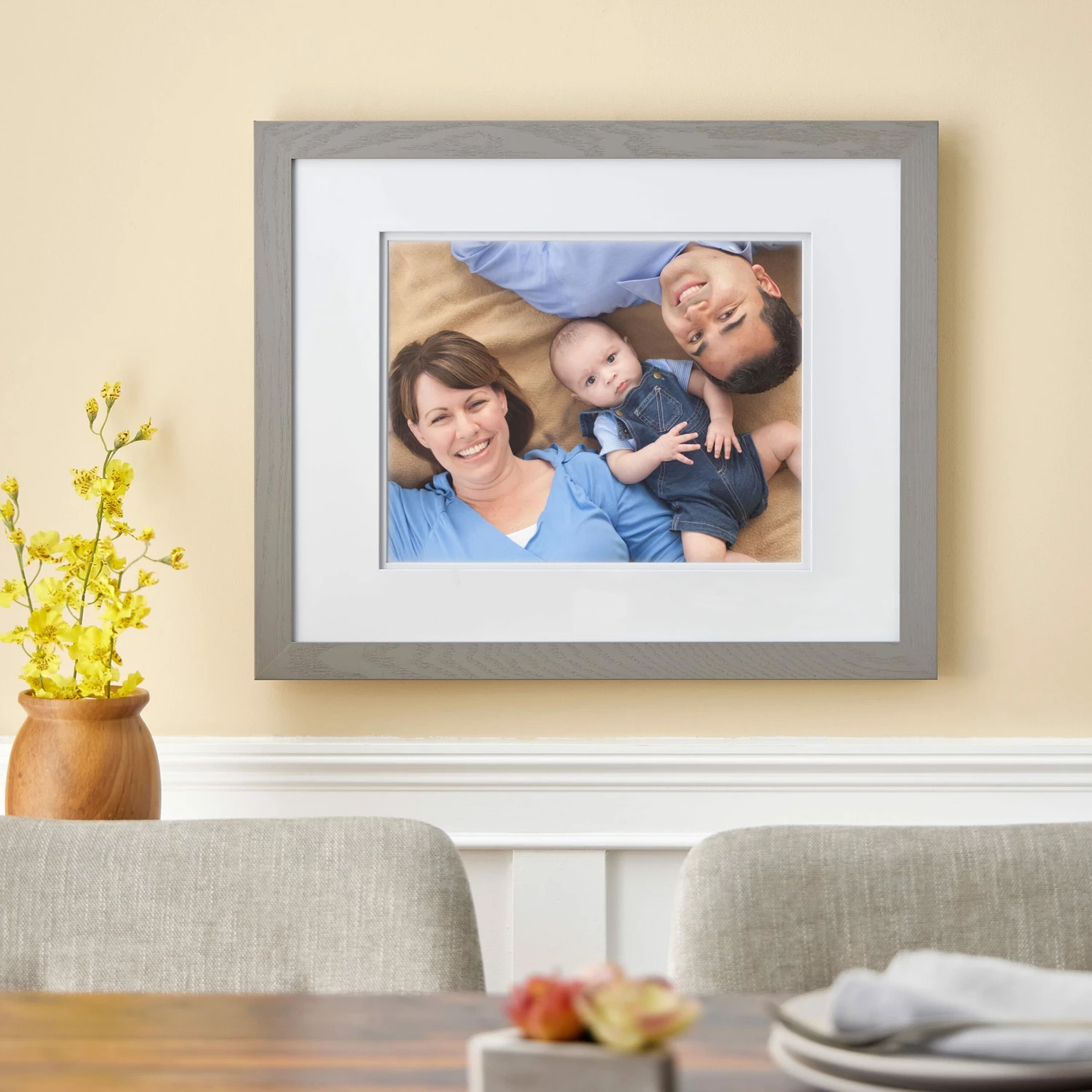 You will love the clean lines of this modern wall frame. Your cherished photograph of friends or family will look great against the double white mat and gray frame.