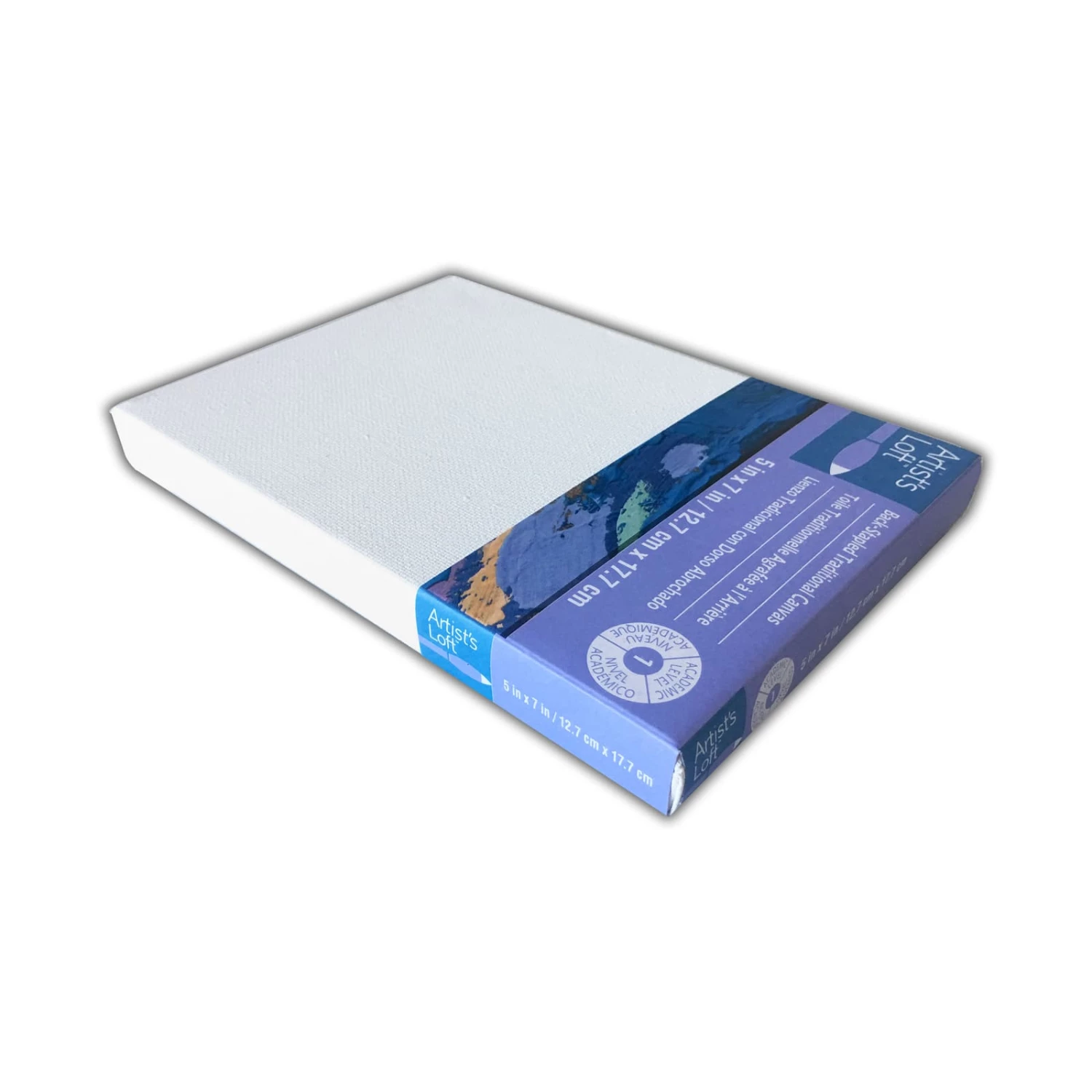 When students and novice artists are ready to paint on traditional canvas, they reach for this prepped back-stapled canvas. This top-quality canvas is ideal for use with acrylic and oil paints, featuring 100% cotton duck with an acid-free, titanium acrylic gesso primer. The canvas is stretched over a solid wood professional frame constructed with kiln-dried, beveled stretcher bars, so artists can create wonderful works of art that will last a lifetime.