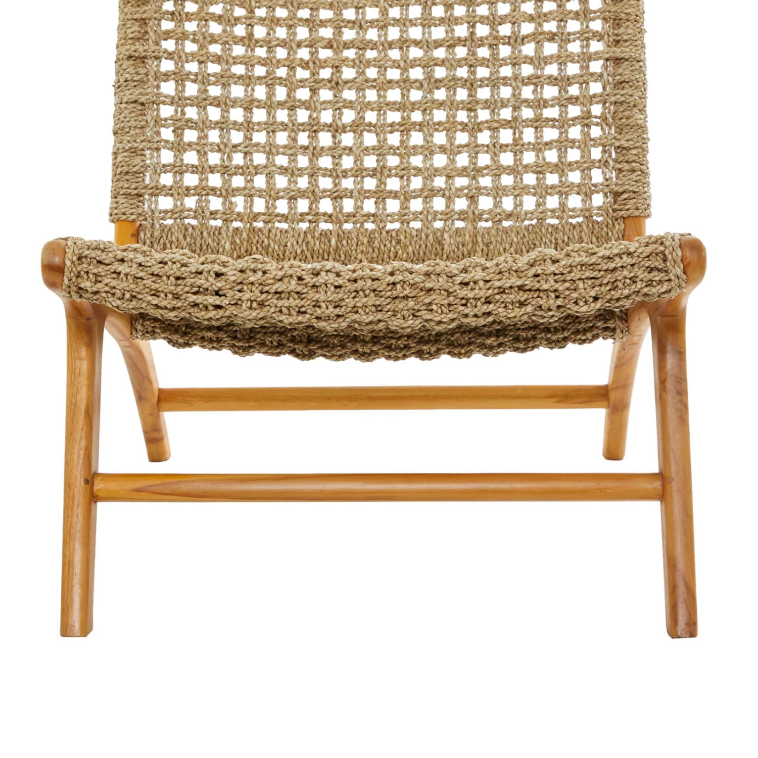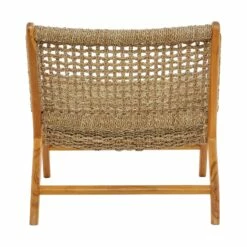 Kick back and relax as you wine down from a long hard day at work. A robust structure with eye catching design for comfortable seating anywhere in your home. A relaxing brown wooden accent chair perfect for your living room, home office, or bedroom. This item ships in 1 carton. Woven rope seat cushion with 0.50″ thickness. Wipe clean with a dry cloth. Suitable for indoor use only. Holds up to 250 pounds. Made in Indonesia. Modern style.