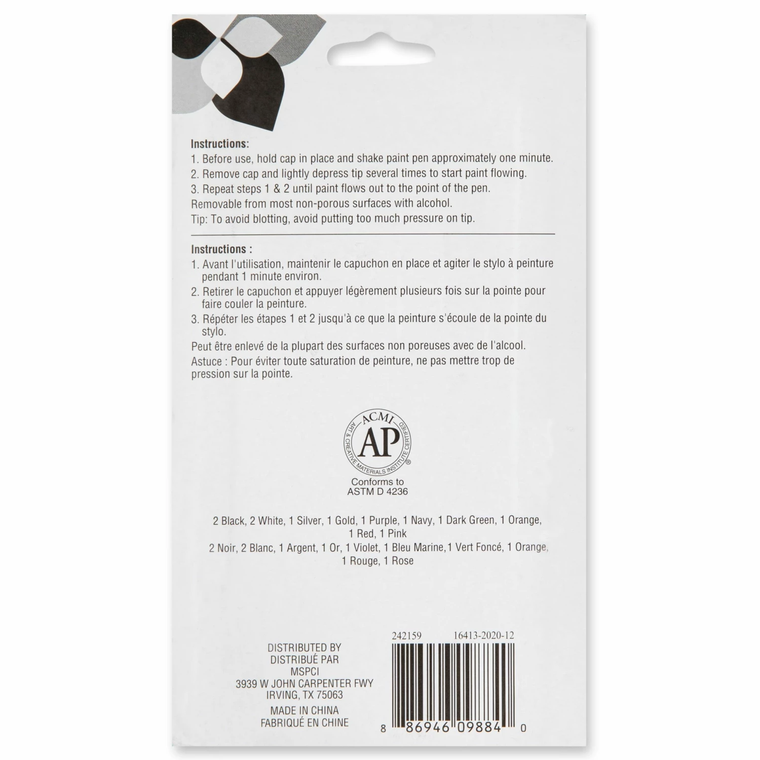 Paint your next art and craft project with ease using these paint pens by Craft Smart. These pens produce medium lines and are perfect for outlining, sketching or painting. You can use them on multiple surfaces. Colors include silver, gold, purple, navy, dark green, orange, red, pink and 2 of each black and white.