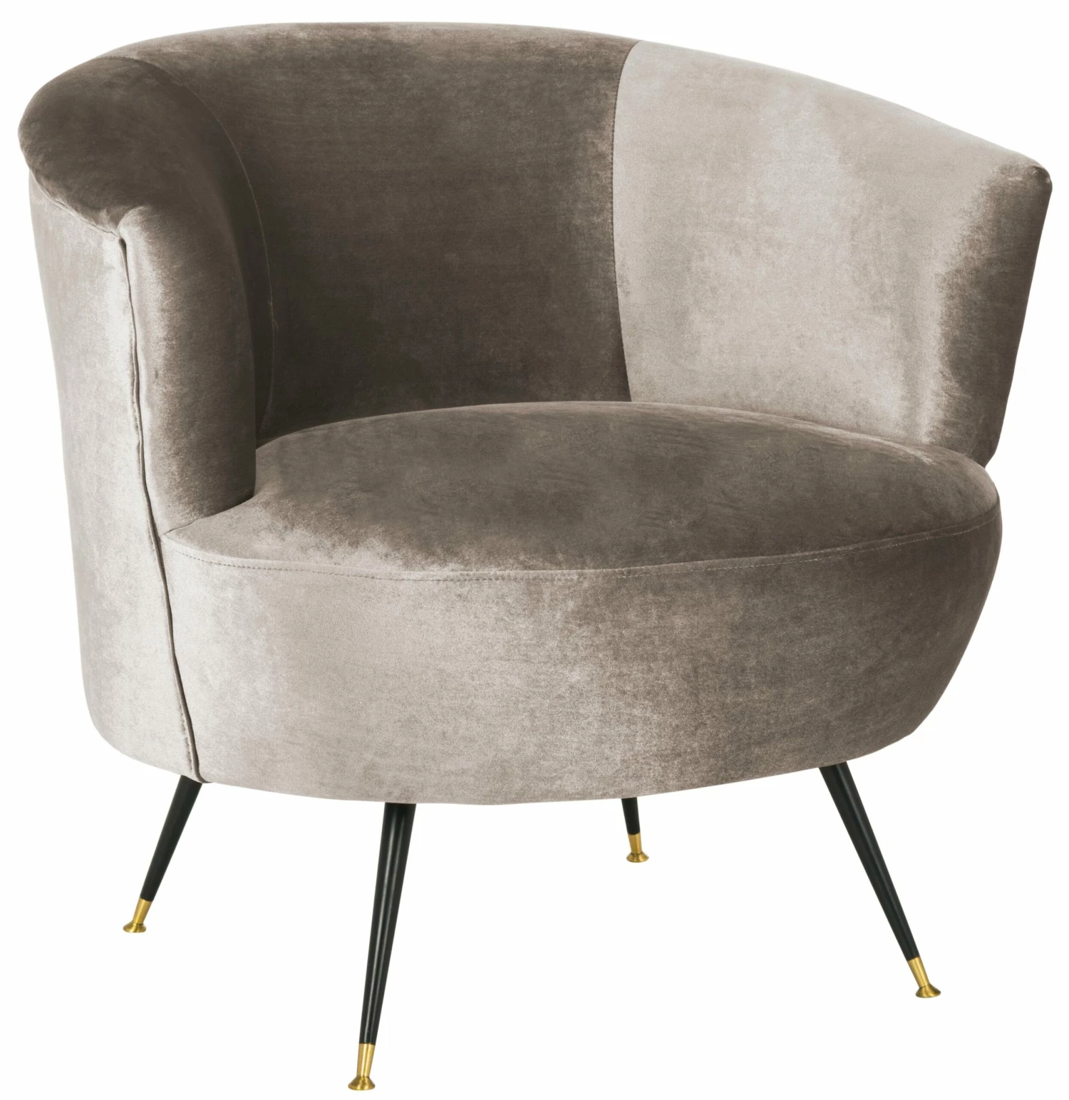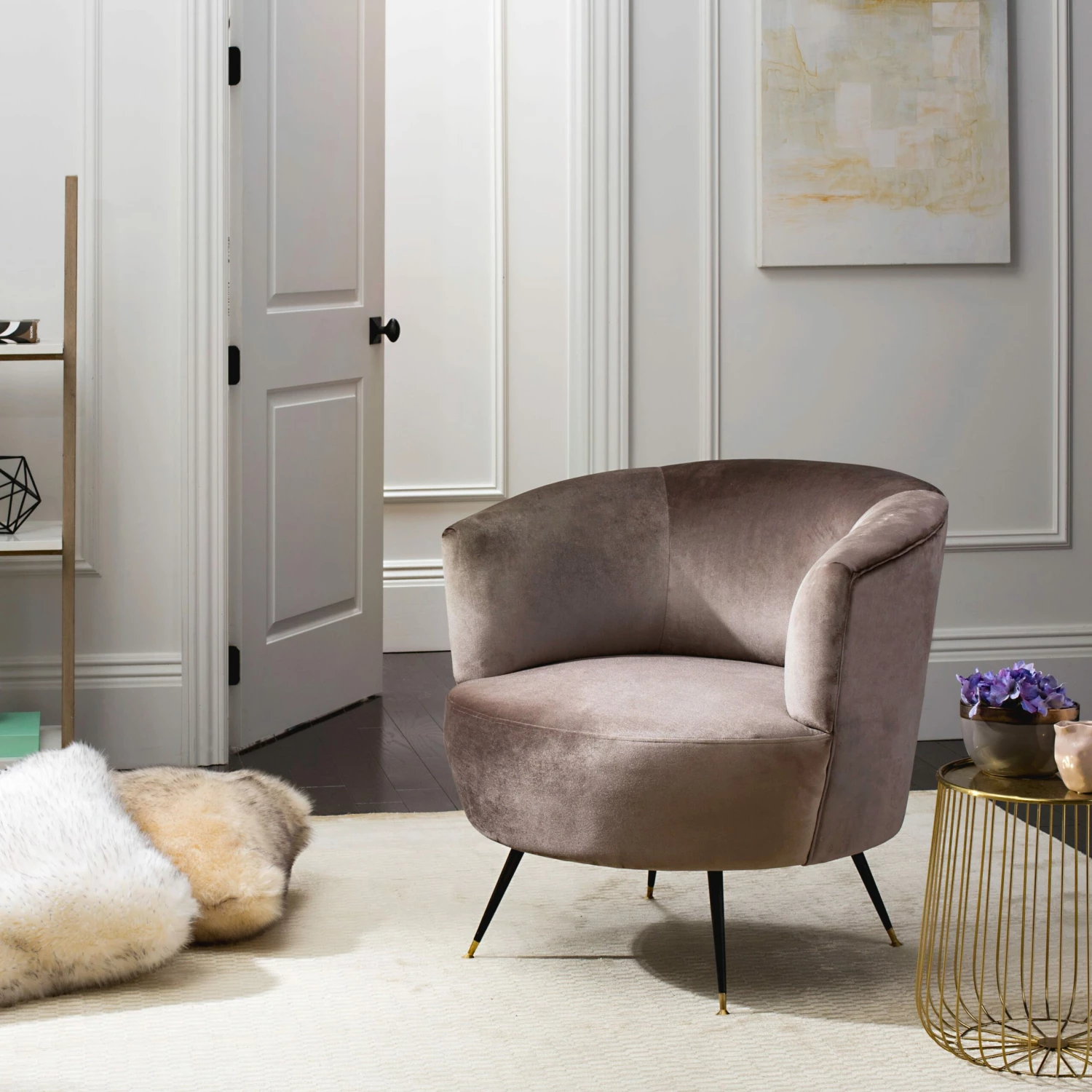 Inspired by retro collector???s items found in one of New York???s top design galleries, this mid-century accent chair brings a luxuriant touch to any room. Upholstered in plush velvet, its stylish curves and posh gold cap legs make an instant statement.