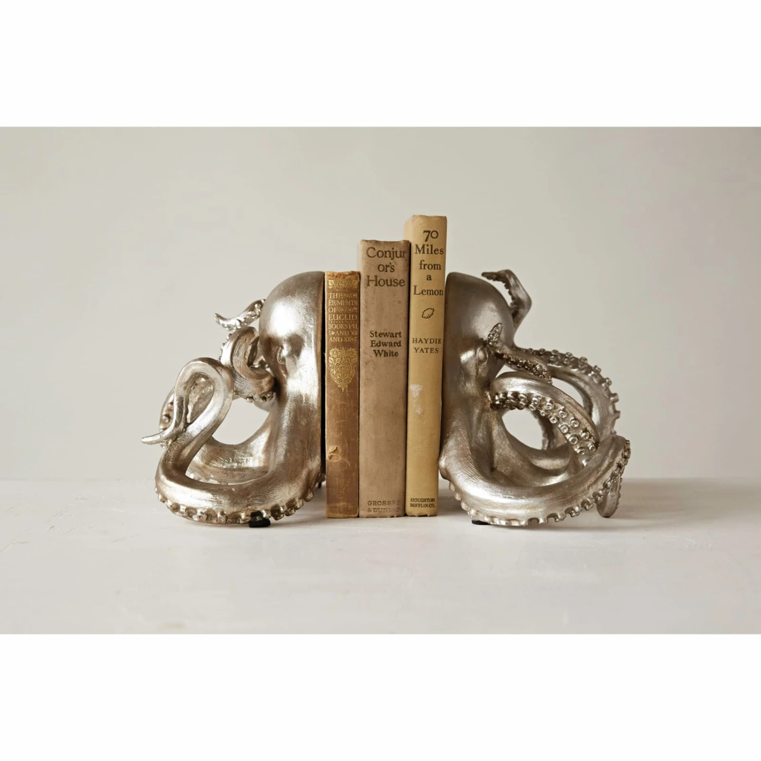 An octopus has many arms and this one has enough to hold a small or large set of books. These silver resin bookends will compliment your room décor and be a great conversation piece.