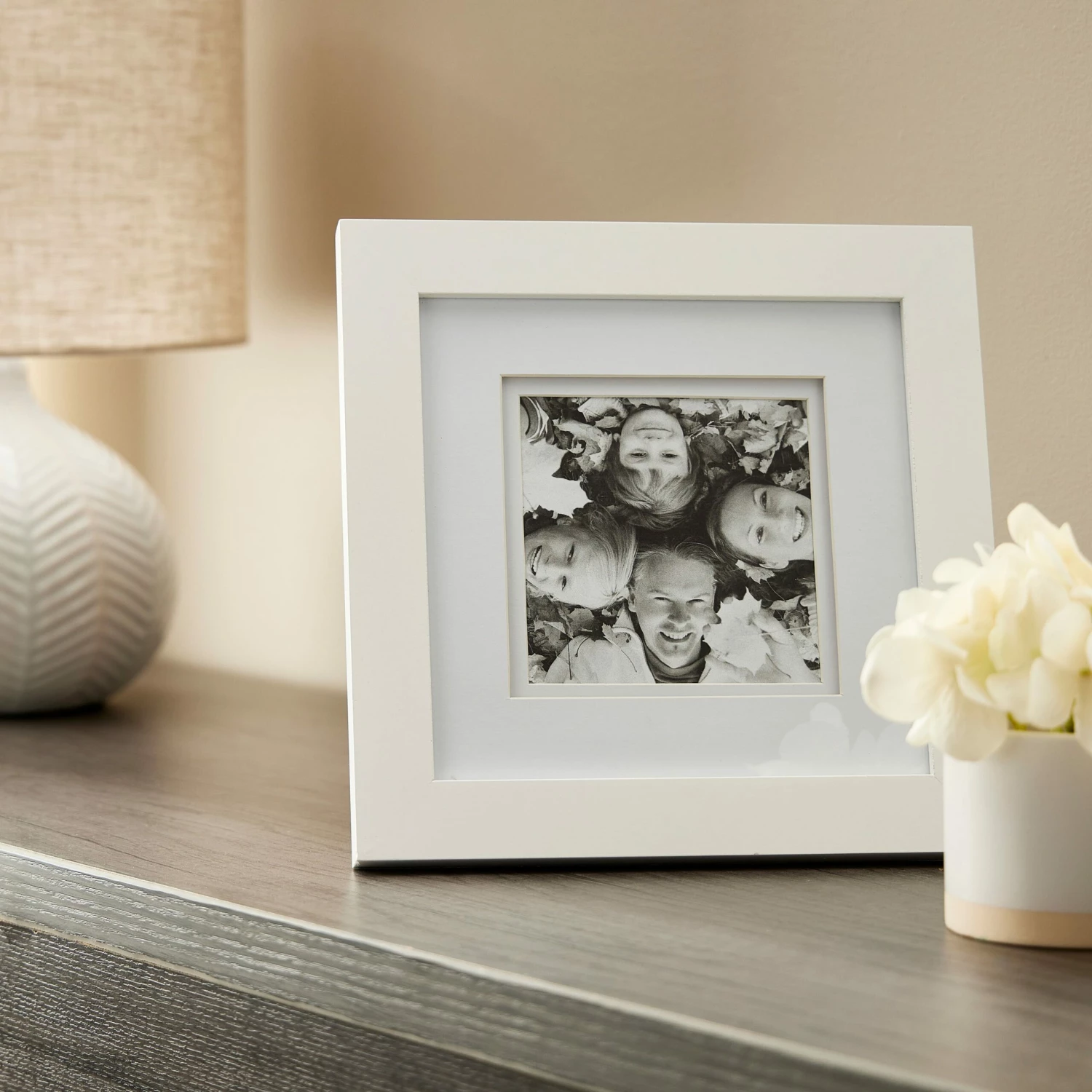 Preserve a cherished photograph or artwork in this distinctive wall or tabletop frame. The double white mat makes your photo or image look extra special.